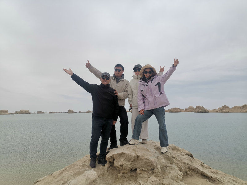 抵達烏素特水上雅丹后,大家被這罕見(jiàn)的地貌奇觀(guān)所吸引。雅丹地貌與清澈的湖水相互交融,形成了一幅如夢(mèng)如幻的畫(huà)面。